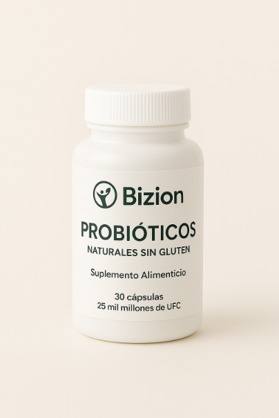 Cepas probióticas (Lactobacillus y Bifidobacterium), Agentes de carga o soporte (inulina o maltodextrina), Cápsula vegetal (generalmente hidroxipropilmetilcelulosa), Antiaglomerantes en pequeñas cantidades (como estearato de magnesio vegetal).